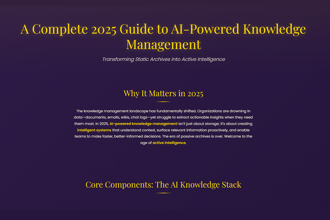 This makes AI-based knowledge management systems essential for organizations dealing with high volumes of information, distributed teams, and fast-changing product or policy environments.