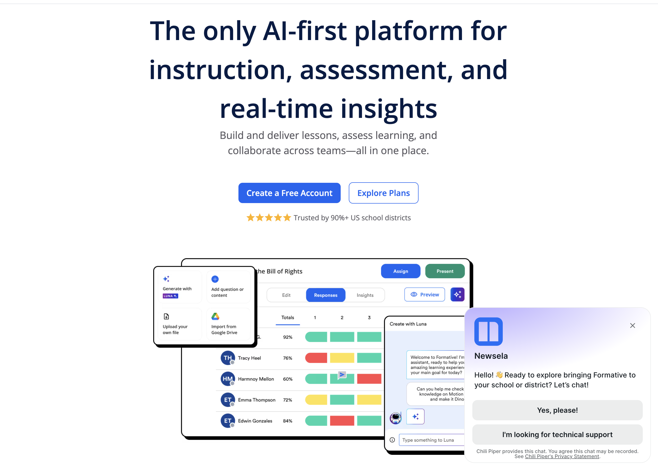 Formative is built around classroom assessment. Its AI support is aimed at speeding up creation of questions/activities inside a system designed to track learning and responses over time.