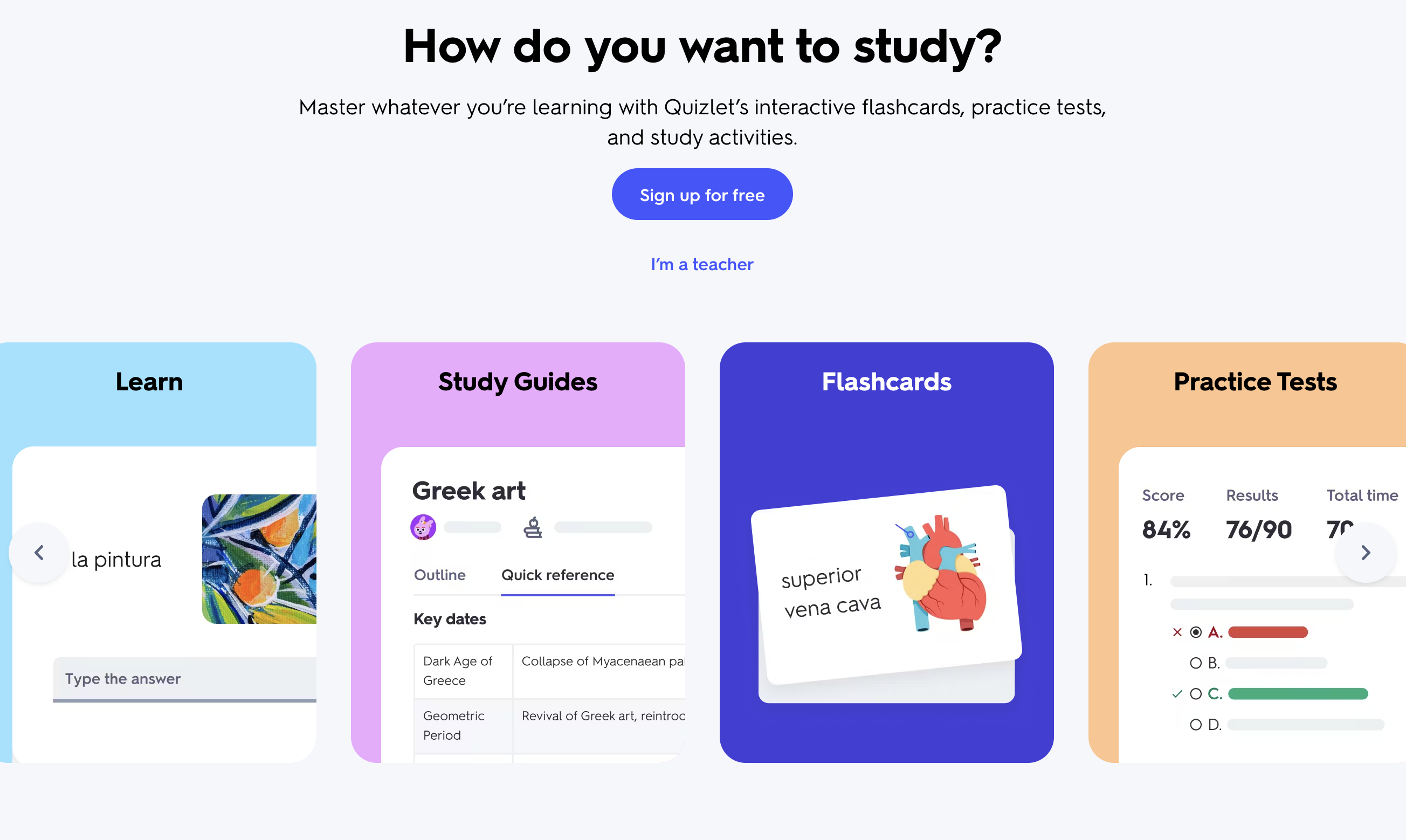 Quizlet has a huge installed base for flashcards, and its newer AI features focus on converting notes into study sets and practice-style testing. If you already live in Quizlet, it’s one of the fastest ways to go from “notes exist” to “practice exists.”