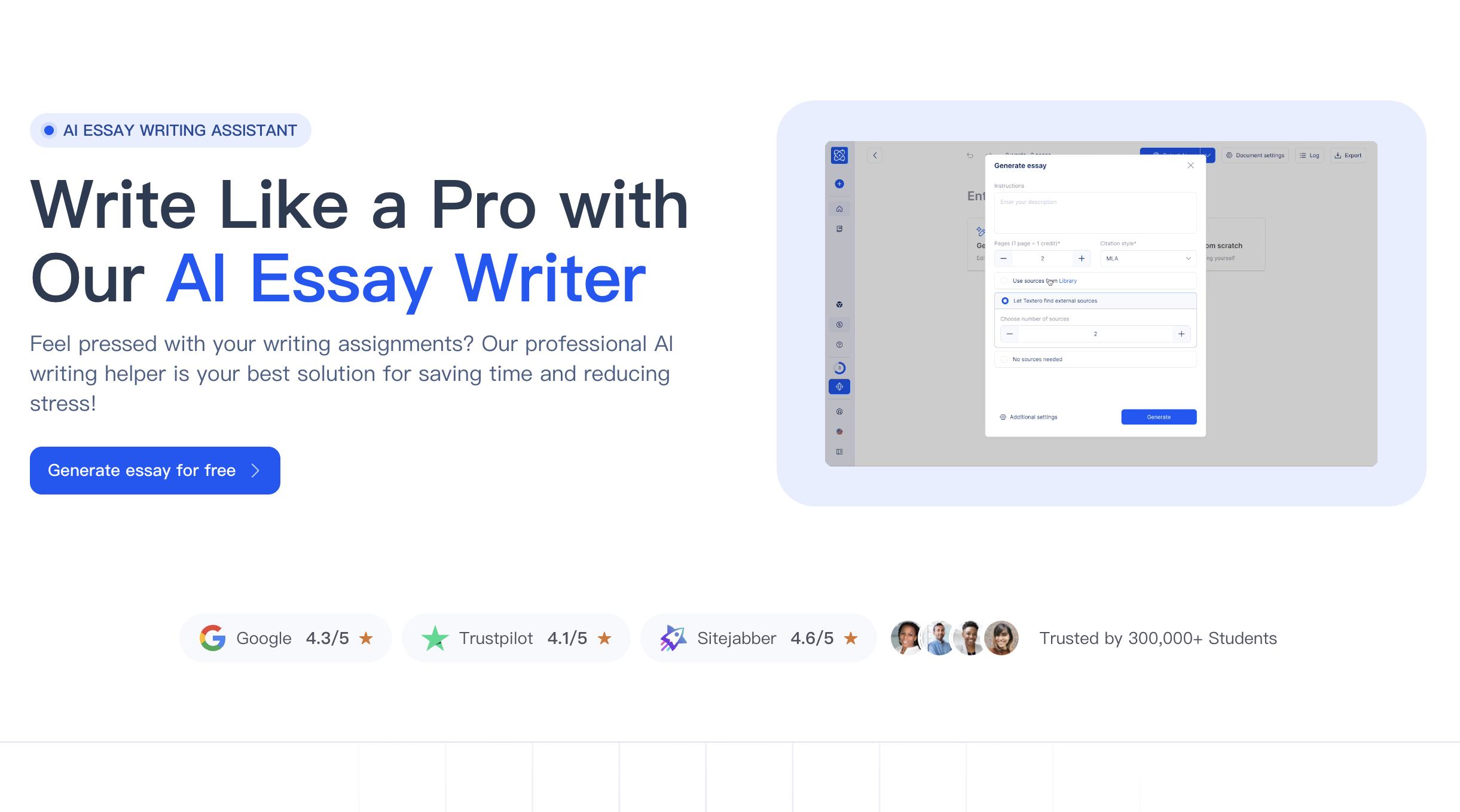 Textero is positioned around academic writing workflows, and its outline generator is designed for essays: thesis-driven structure, paragraph planning, and typical academic conventions.