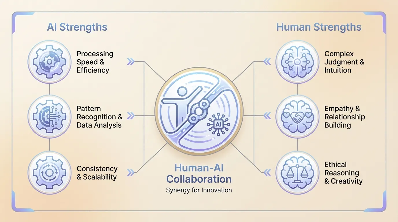 Effective collaboration requires honest assessment of what AI and humans each do well.