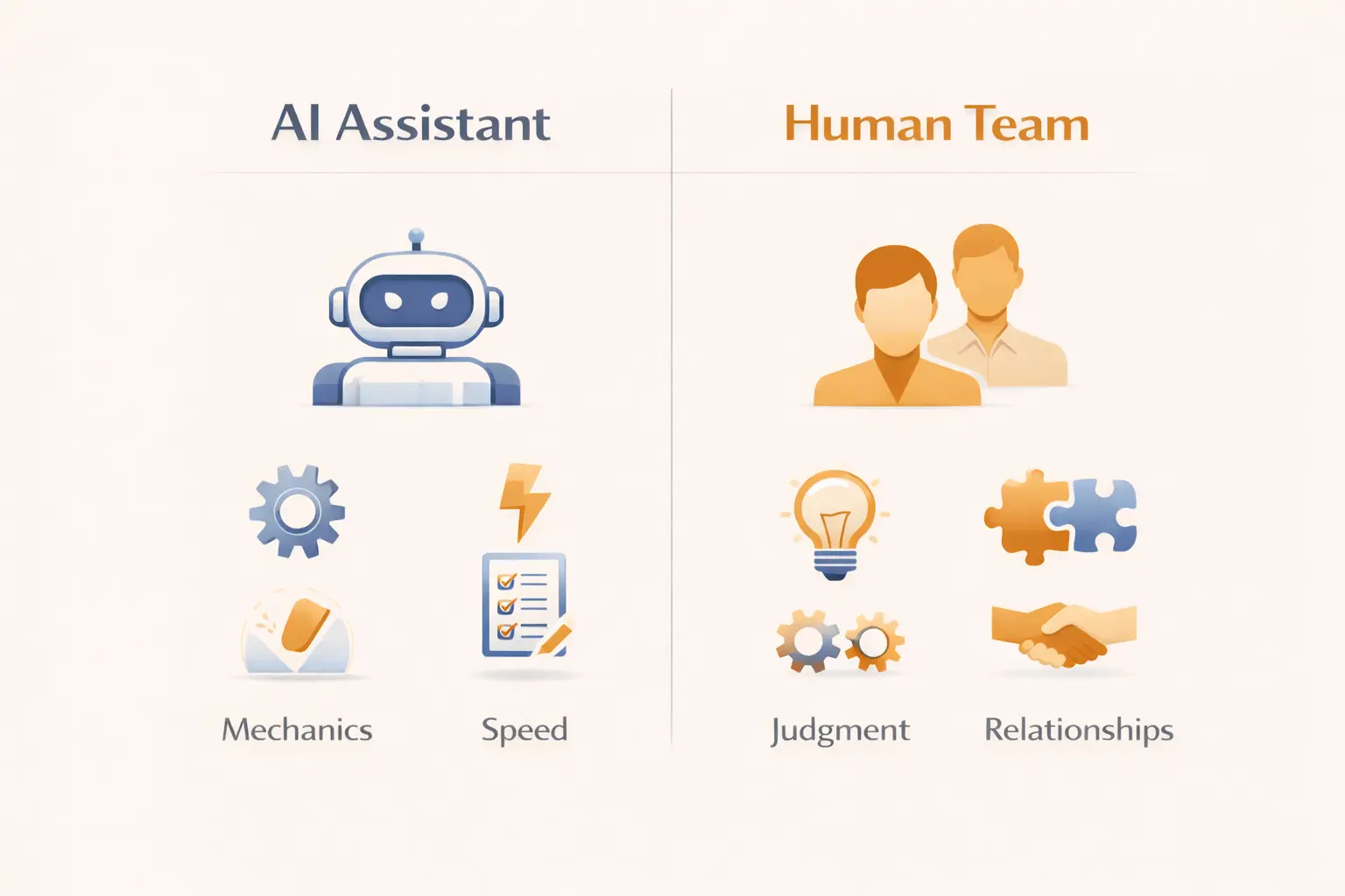 The pattern follows consistent principles. AI handles volume , speed , and consistency. Humans handle judgment , creativity , and relationship building. The combination outperforms either working alone.