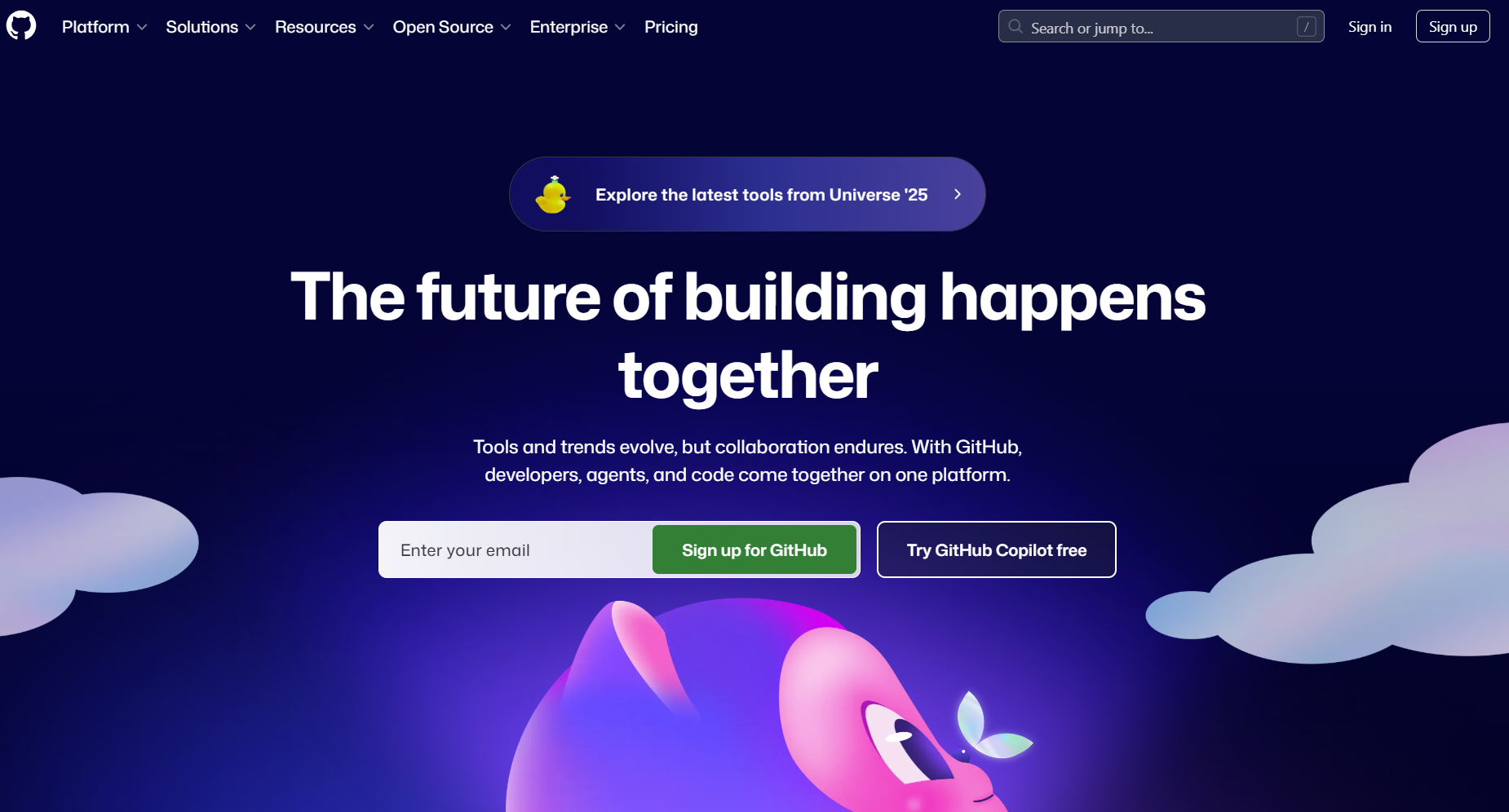 GitHub is the most widely used platform for collaborative software development. It hosts over 100 million developers and more than 420 million repositories. The platform combines Git-based version control with powerful code review tools that help teams maintain code quality at scale.