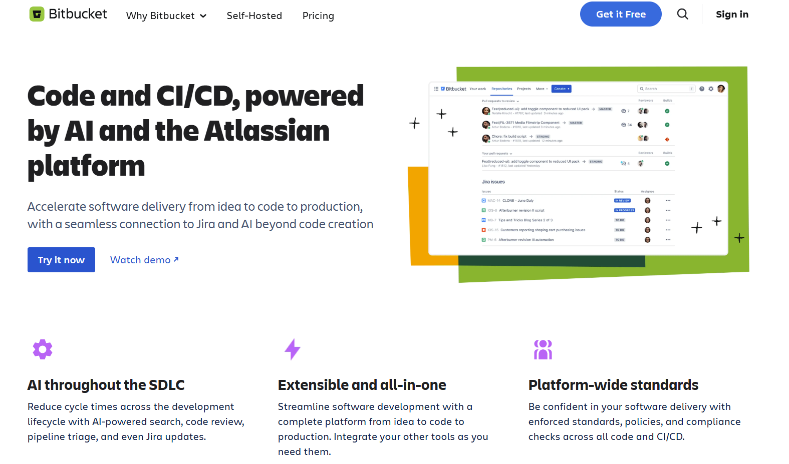 Bitbucket is Atlassian's source code repository. Its biggest advantage is tight integration with Jira and other Atlassian products. If your team already uses Jira for project management, Bitbucket creates a seamless connection between your code and your tickets.