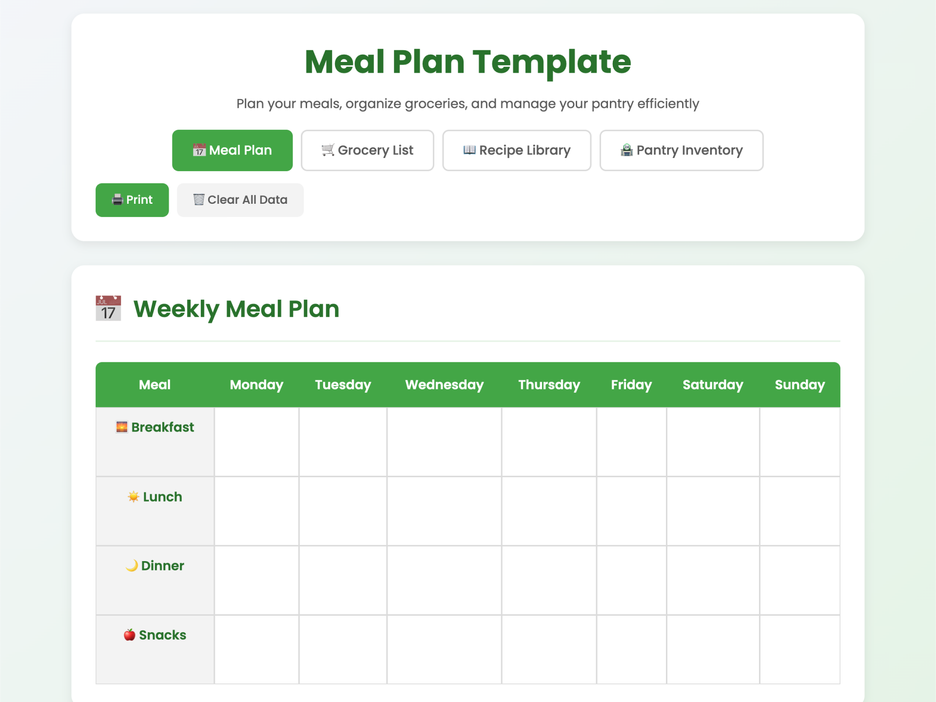 Need a physical copy? The template includes print-friendly formatting that presents your data cleanly on paper, hiding interactive elements that don't make sense in print.