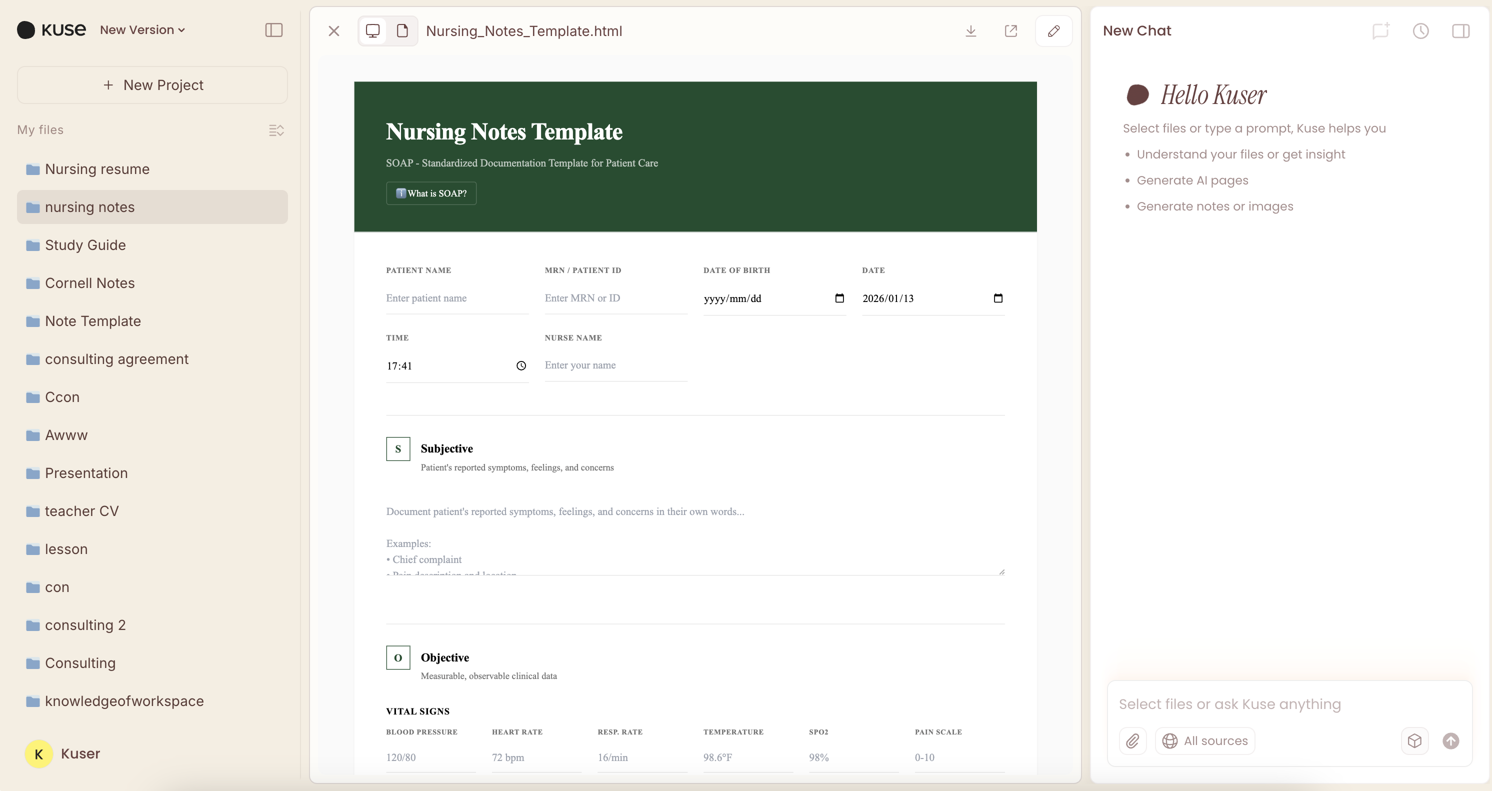 This nursing notes template is built specifically around that workflow and translates the SOAP method into a practical, interactive form.