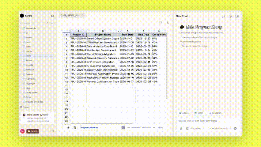 Kuse 会自动扫描您的电子表格,并突出显示任何列或行中的重复值 —— 只需用简单的英语描述您需要的内容即可。